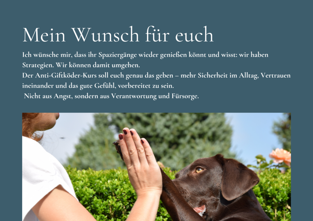 Dabei arbeiten wir fair, kleinschrittig und ohne Zwang. Ziel ist kein „Funktionieren“, sondern ein Hund, der freiwillig kooperiert – weil er verstanden hat, was sich für ihn lohnt.